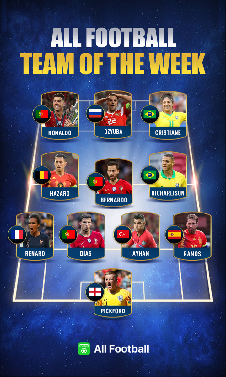 All Football Team of the Week: Ronaldo & Hazard shine, 2 female players included