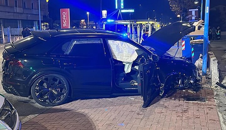 Balotelli has to be helped to an ambulance after crashing his £100,000 Audi Q8