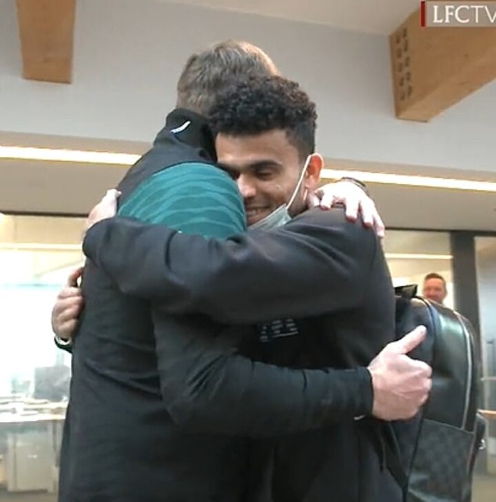 Jurgen Klopp welcomes new Liverpool man Luis Diaz with one of his trademark hugs