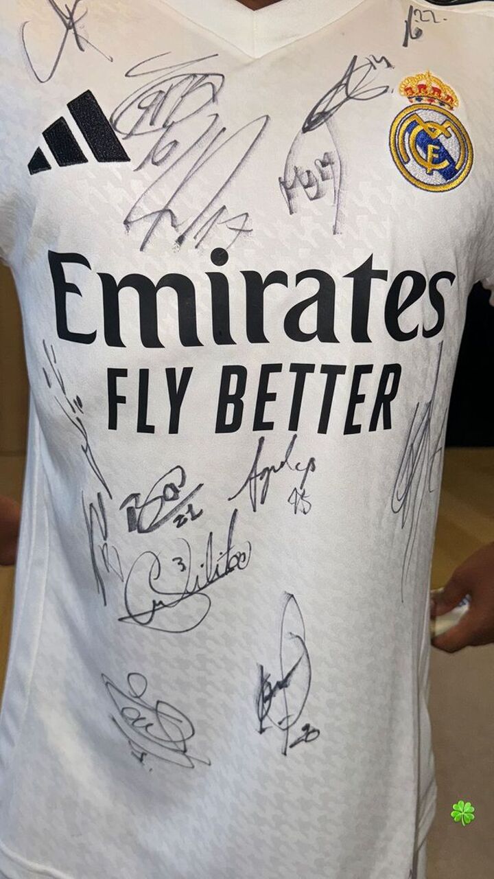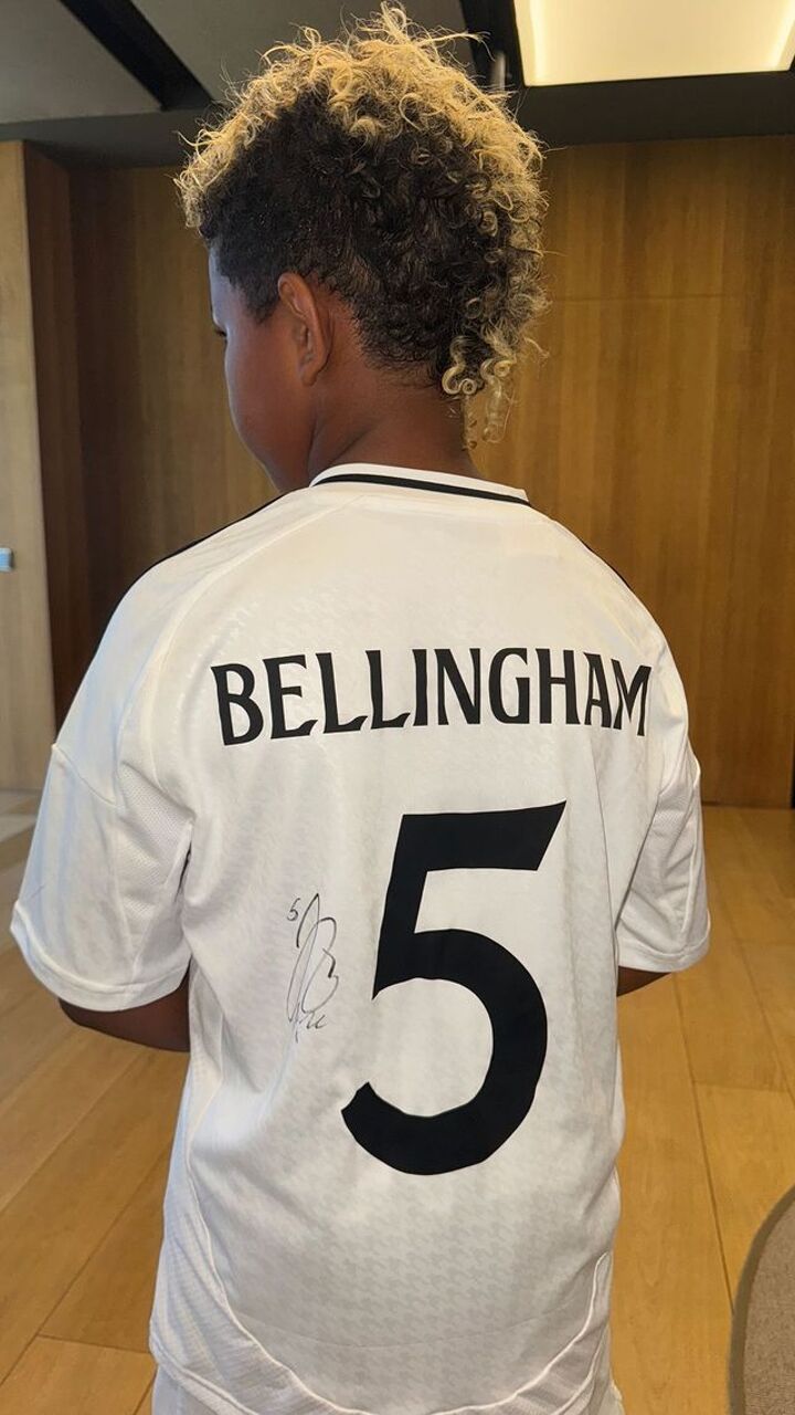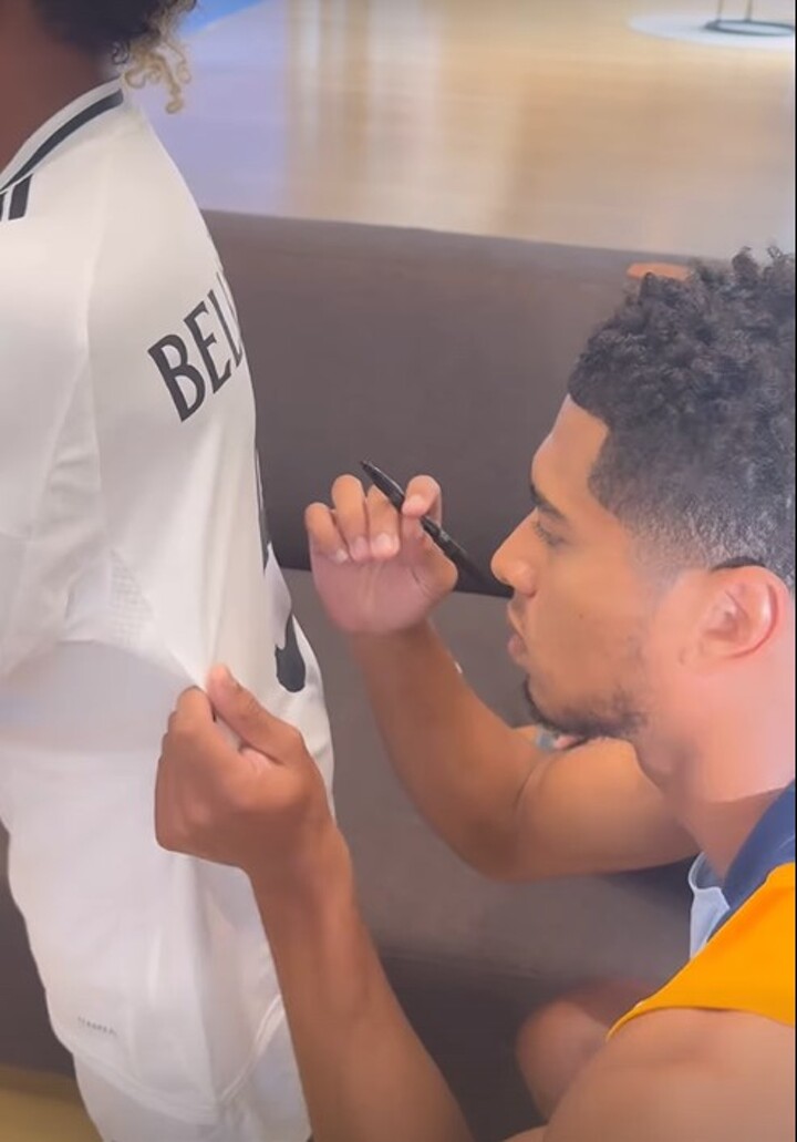 But it was Bellingham who delighted Saint and friends as he signed autographs on a customised jersey.