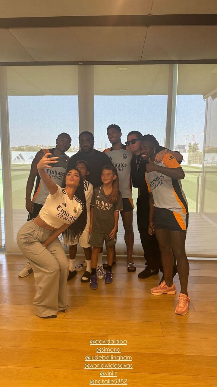 KIM KARDASHIAN linked up with Jude Bellingham at Real Madrid’s training ground during a visit to the Spanish capital.