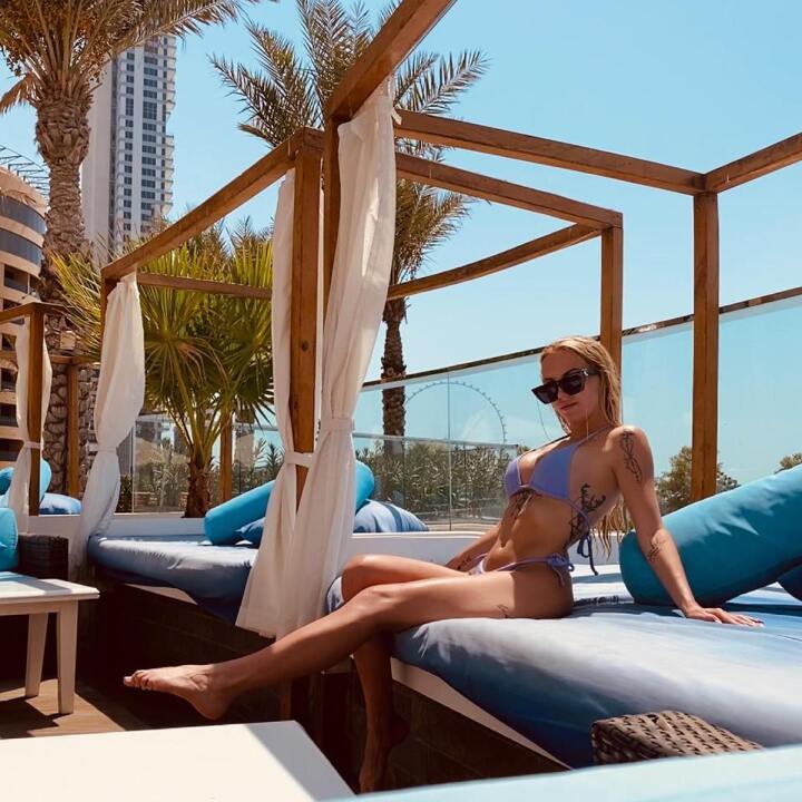 And after wiggling her bum on the beach as she soaked up the sun in Dubai.