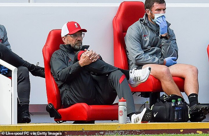 The former Dortmund boss was seen wearing Adidas trainers in Liverpool's 7-2 friendly win over Blackpool - but also sported a pair of Nike tracksuit bottoms.