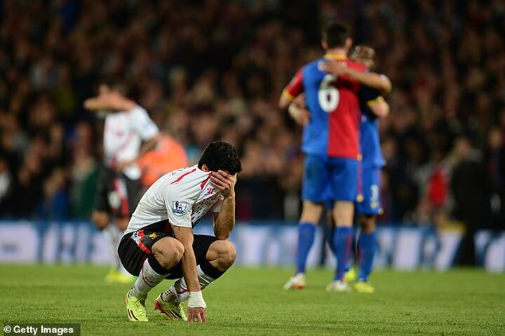It is May 5, 2014, shortly before 10pm, and crouched down on the turf at Selhurst Park, Luis Suarez holds his shirt over his eyes to mask the tears.