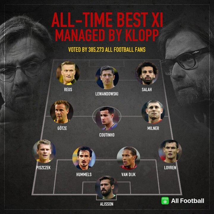 From FSV Mainz 05 to Liverpool, Jürgen Klopp has become one of the best coaches in the world. As Klopp worked with so many great players, we released a vote of All-time Best XI managed by Klopp yesterday and the results are as follows: