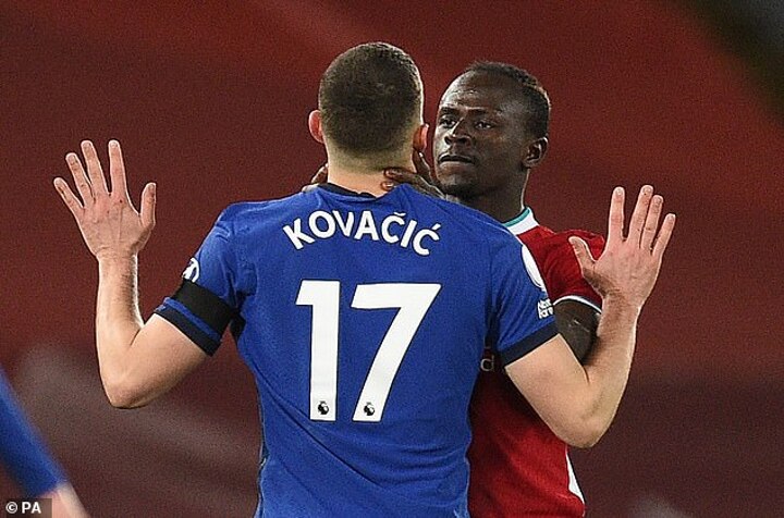 After being shoved to the ground by Antonio Rudiger, Mane slid on the turf before having the ball thumped against his head at close range by Kovacic, which saw the Senegalese forward instantly confront him.