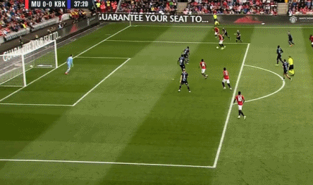 35' Rashford's Long range free kick parried away
