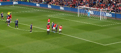 A great save from the keeper denies Marcus Rashford from his powerful free-kick.