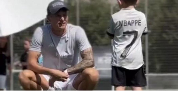 Toni Kroos has posted a photo in which he appears next to a child in Mbappe's shirt at his academy in Cologne.