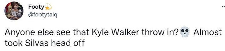 'Anyone else see that Kyle Walker throw in? Almost took Silva's head off,' one fan tweeted.
