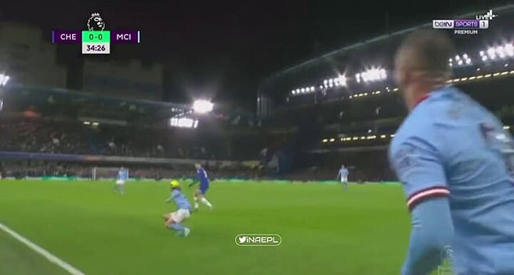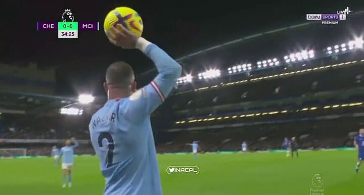 The incident occurred in the 35th minute when City had a throw on the right flank inside the Chelsea half, with Walker looking for someone to play the ball to.