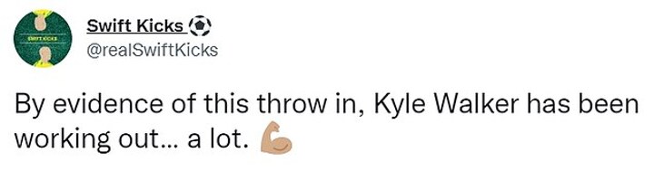 'By evidence of this throw in, Kyle Walker has been working out… a lot,' they wrote.