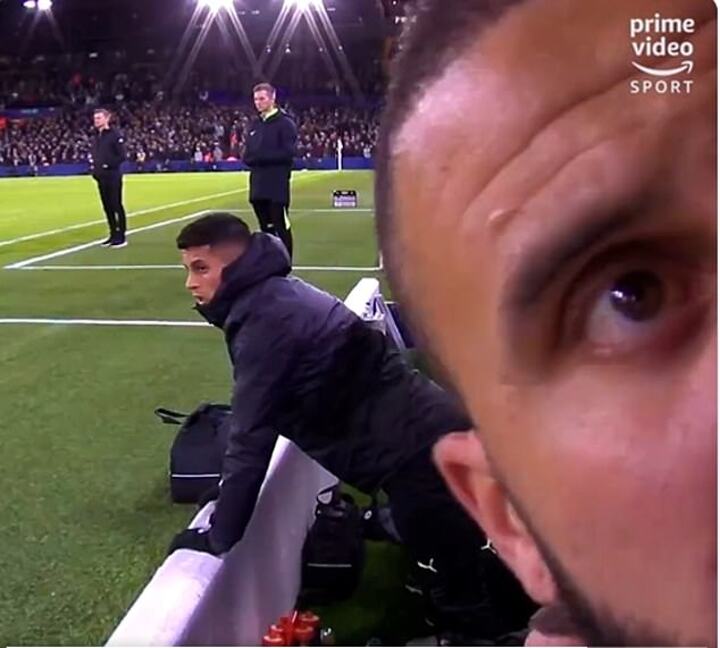 The City defender was most likely desperate to evade the bench cam and get on the pitch, but Pep Guardiola opted for 18-year-old Rico Lewis following his strong display against Liverpool in the Carabao Cup last week.