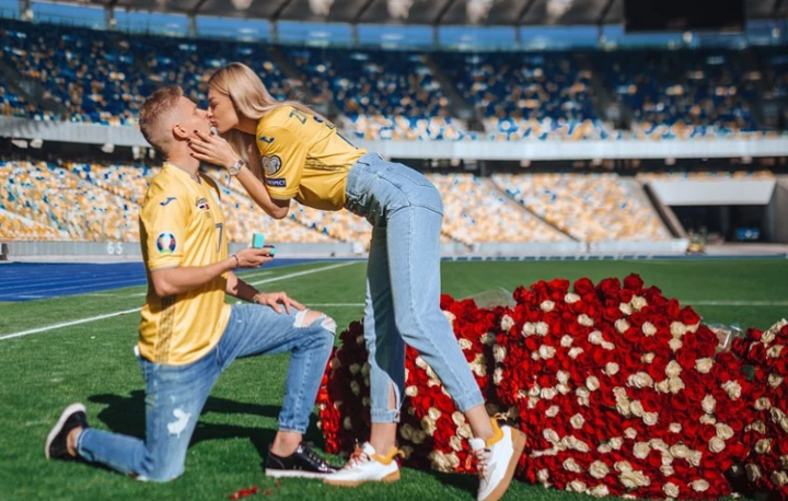 Zinchenko proposed to stunning girlfriend in stadium hours after kissing her live on TV following Ukraine’s Euros berth.