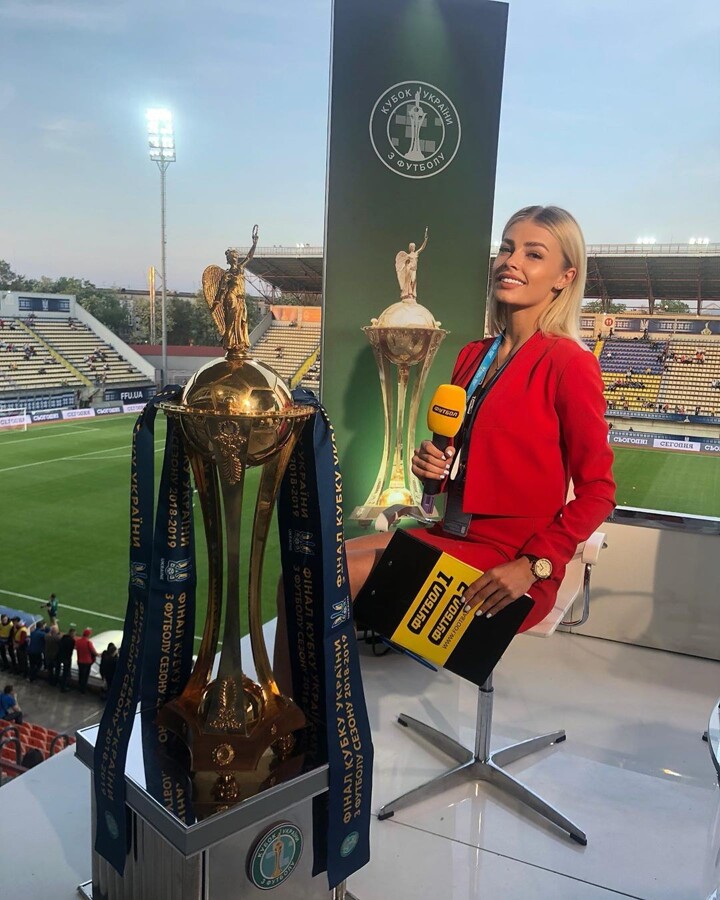 Rumours of a romance with the 21-year-old were sparked earlier this year when Zinchenko kissed the presenter after an interview following Ukraine's 5-0 win over Serbia in June.