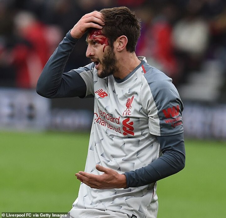 Lallana was left in a heap on the turf, and rising quickly to his knees could be seen with a face full of blood.