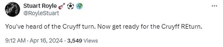 Another joked: 'You've heard of the Cruyff turn. Now get ready for the Cruyff REturn.'