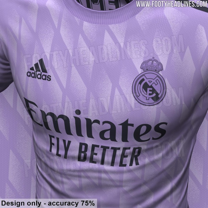 On the chest area of the Real Madrid 22-23 away jersey will be a diagonal tiles design in a lighter shade of purple.