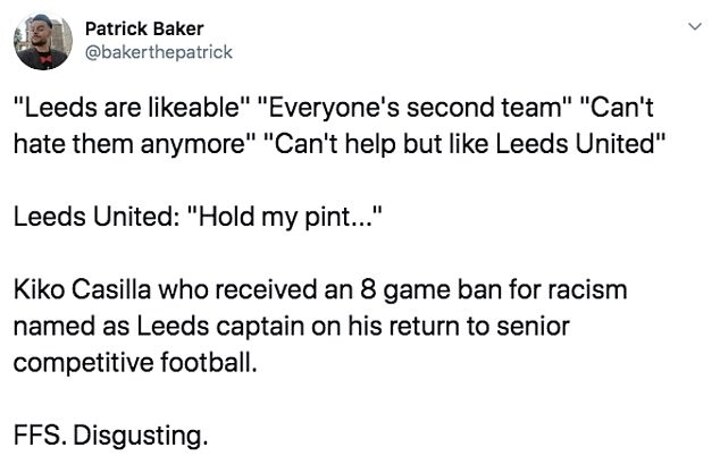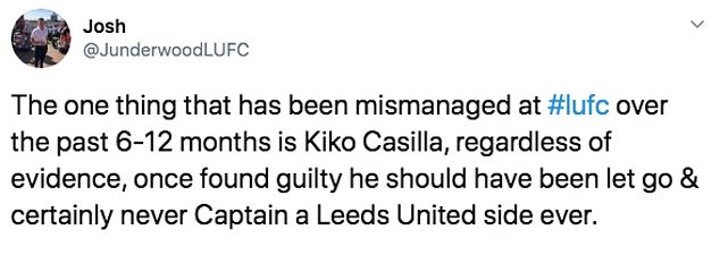 One user wrote: 'Please, why is Kiko Casilla still at Leeds, how is being guilty of racism not violation of contract and a kick in the teeth to play him and captain him.