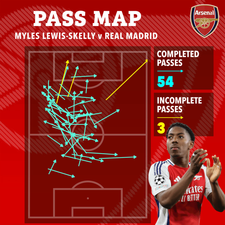 During the match, Lewis-Skelly would manage 74 touches of the ball and complete a whopping 54 passes out of 57 attempted.