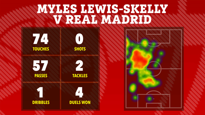 The stat that stood out the most showed that, despite being a left-back, Lewis-Skelly had played the vast majority of his football in the Real Madrid half.