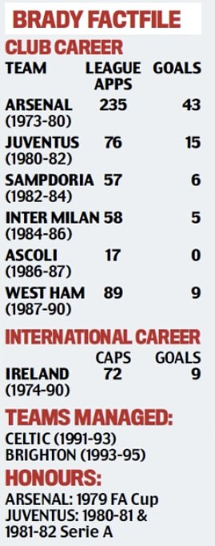 But Arsenal were smart and Brady arrived in London as a 15-year-old destined to leave nine years later as one of the greats of European football.