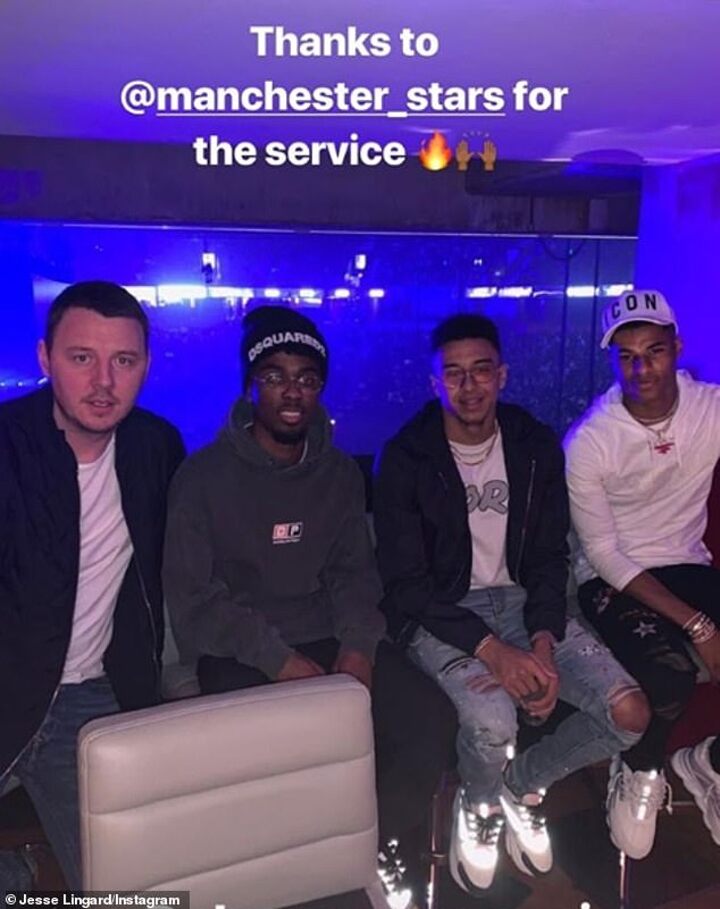 Lingard and Rashford smiled for a photo as they watched Drake perform from a VIP lounge before Lingard labelled Drake as the 'GOAT' on his Instagram story.