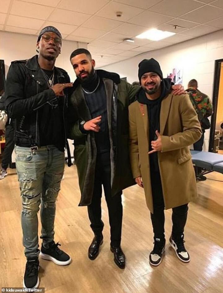 Manchester United's star trio all saw the Canadian rapper perform to a sold-out crowd before Pogba was able to get meet Drake after the gig.