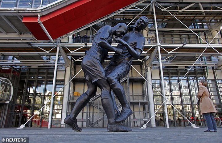 This is just plain weird. The below statue, built to remember France star Zinedine Zidane's head-butt on Italian opponent Marco Materazzi (right) in the 2006 World Cup final, raises more questions than it answers.