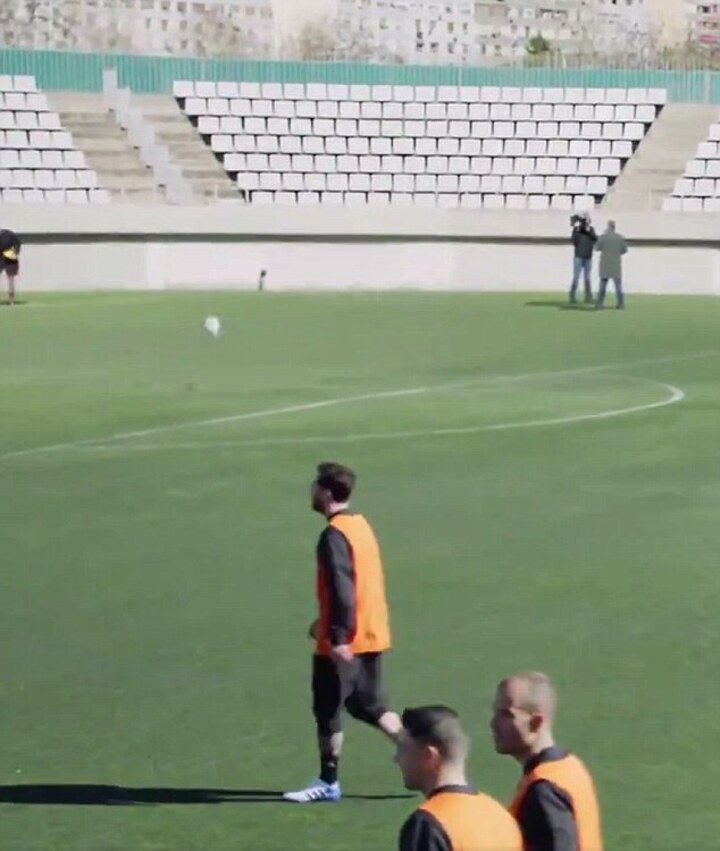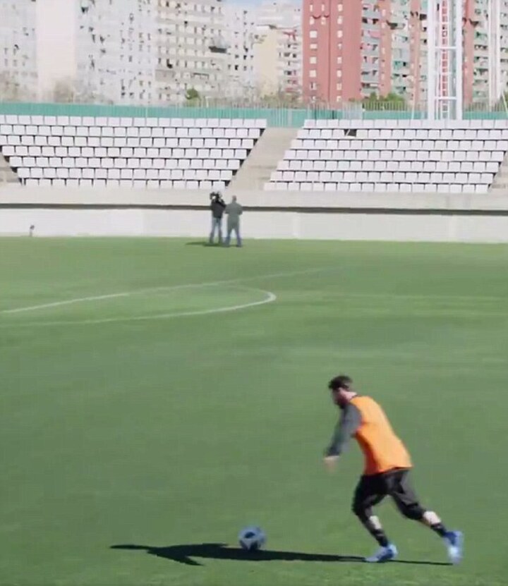 Lionel Messi has featured in a new Adidas advert pulling off a remarkable nutmeg from across a football pitch.
