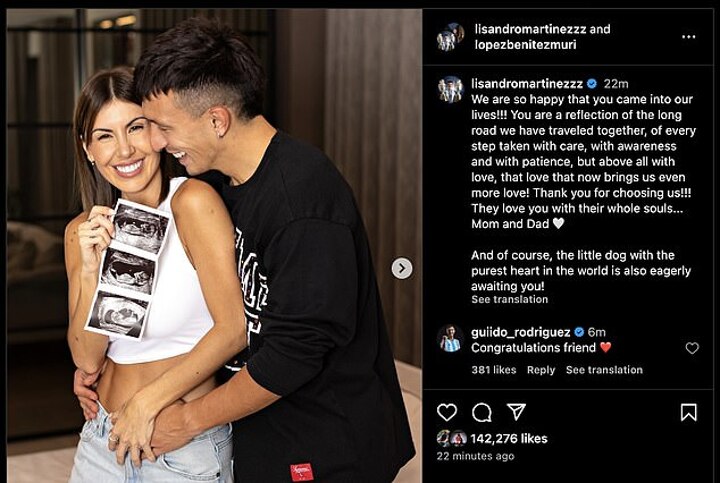 Manchester United centre-back Lisandro Martinez has shared that him and partner Muri Lopez Benitez are expecting their first child.