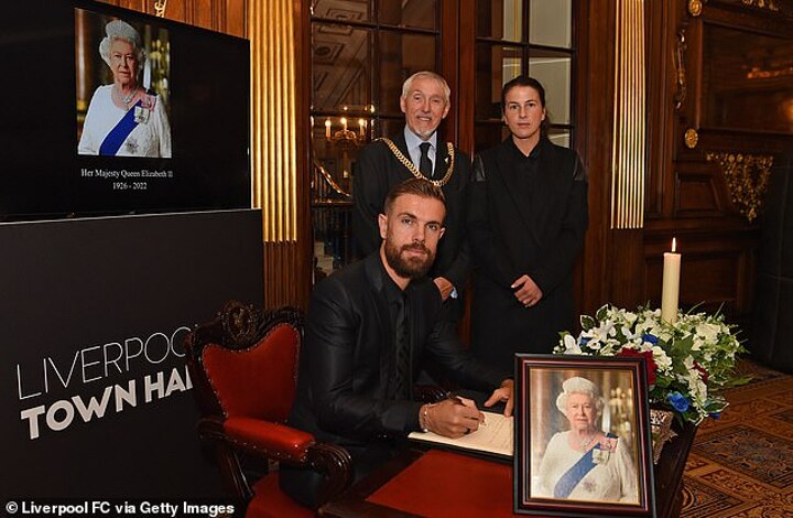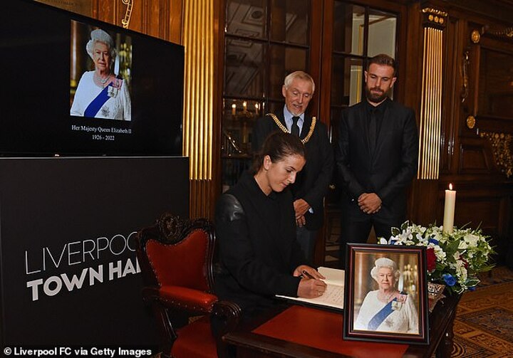 It came after Liverpool captains Jordan Henderson and Niamh Fahey signed a book of condolence to honour the Queen, who passed away aged 96 last Thursday.