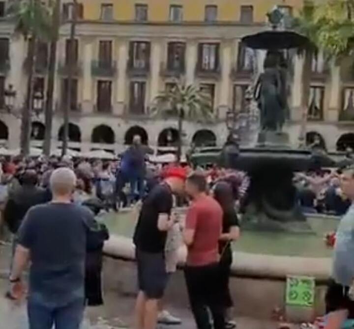 Martin Mullen has been identified as the man who was filmed shoving a local into a fountain on Tuesday in the busy Placa Reial square.