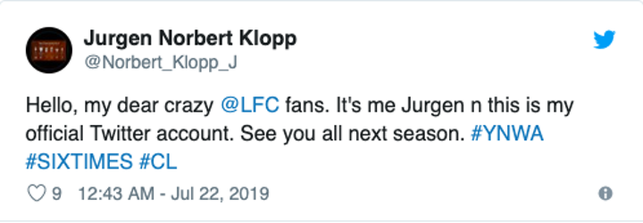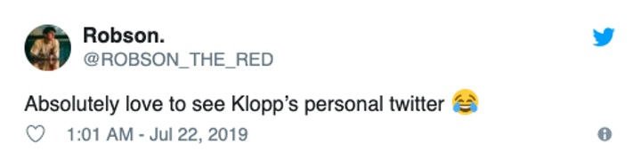 However, it would appear that Liverpool's Jurgen Klopp has a secret Twitter account that no one knows about.