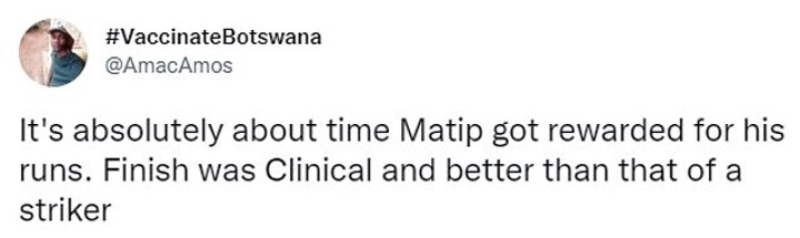 A third added: 'It's absolutely time Matip got rewarded for his runs. Finish was clinical and better than that of a striker.'