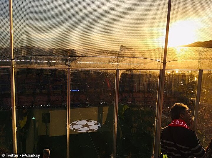 Pre-match, photos from supporters high in the away section at the Nou Camp showed the sun's glare making things worse, with the light reflecting off the glass and making it difficult to see the pitch in the distance.