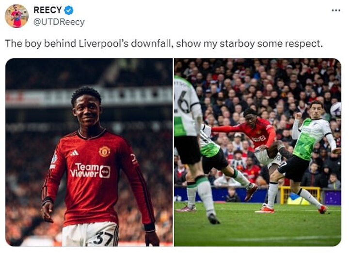 'The boy behind Liverpool’s downfall, show my starboy some respect,' one fan posted on X, formerly Twitter, accompanied by two photos of teenage sensation Kobbie Mainoo.
