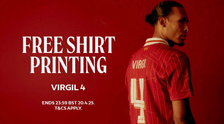 To celebrate Virgil van Dijk’s new Liverpool contract, LFC Retail is offering free ‘Virgil – 4’ shirt printing for a limited time only.