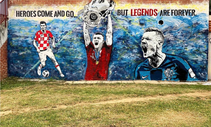 The wall painting features two images of Lovren playing for the national team and another lifting the Champions League trophy with the Reds.