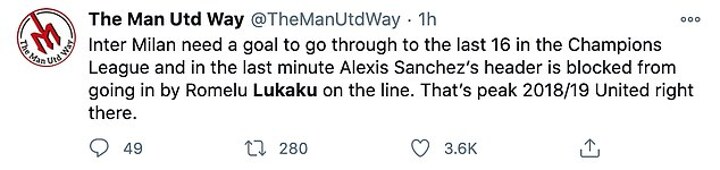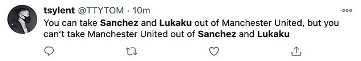 @TTYTOM added: 'You can take Sanchez and Lukaku out of Manchester United, but you can't take Manchester United out of Sanchez and Lukaku'.