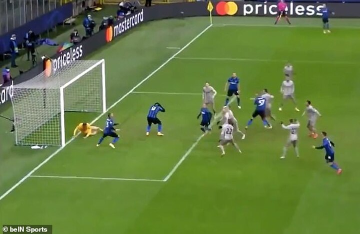 It remains to be seen whether the goal would have stood if it had missed Lukaku's head because the former Chelsea, United and Everton striker looked to be offside and blocking the goalkeeper's view.