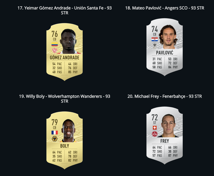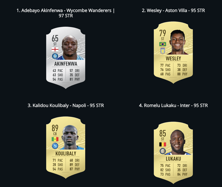 EA Sport have released the top 20 strongest players on FIFA 20 as Lukaku on 4th.