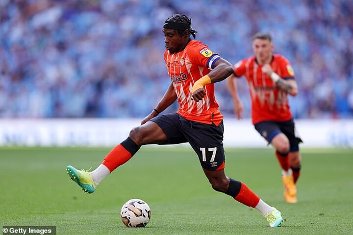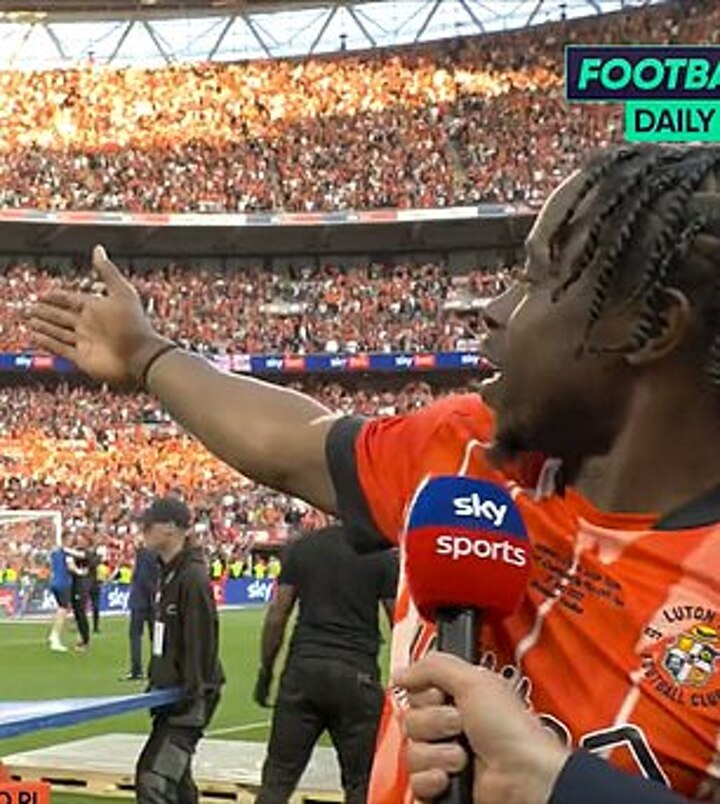 He continued: 'Here I am, Premier League player with this man [Carlton Morris] next to me, these boys [the fans], it's going to be a party all summer in Luton!'