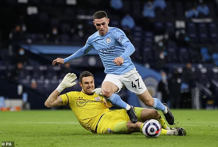 Not for the first time this season, Foden should have had a penalty but stayed on his feet against Everton. Had he tumbled after his ankle was taken by Mason Holgate, Michael Oliver, the referee, would surely have given it.