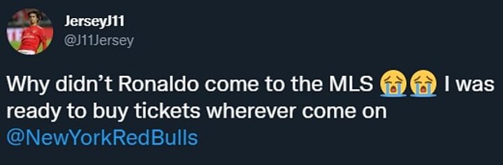 Yet another user asked his favorite club to try and bring him stateside, tweeting, 'Why didn't Ronaldo come to the [sic] MLS I was ready to buy tickets wherever come on @NewYorkRedBulls'
