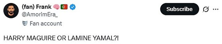 'HARRY MAGUIRE OR LAMINE YAMAL?!' one fan jokingly asked after the 17-year-old wonderkid starred for Barcelona in their 3-3 draw with Inter Milan on Wednesday.
