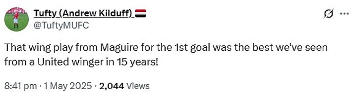 'That wing play from Maguire for the 1st goal was the best we've seen from a United winger in 15 years!' another supporter insisted.
