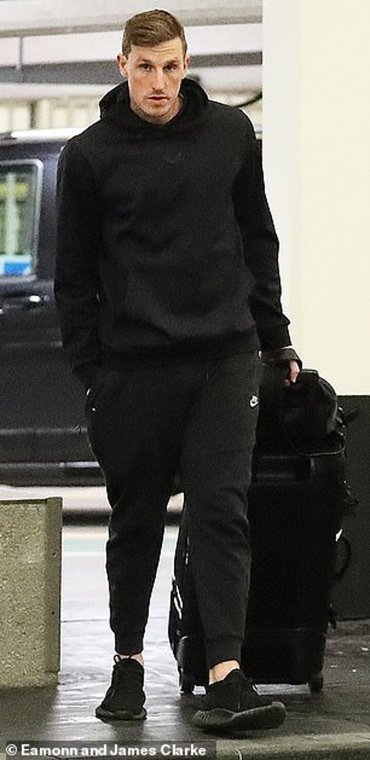 Harry Maguire cut a casual figure as he arrived at Manchester Airport in time for a flight to Dubai with his fellow Premier League footballers on Saturday night.