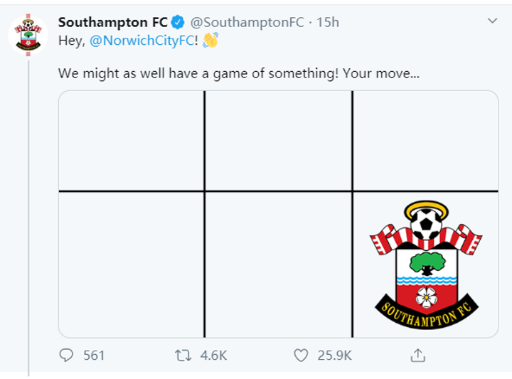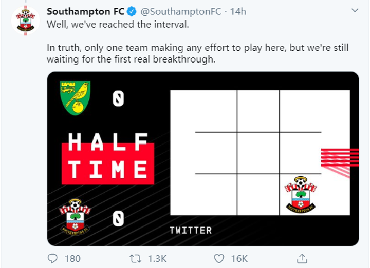 At first, the Saints invited Norwich (their rivals yesterday if EPL was not suspended) to their game. Unfortunately, Norwich's Twitter did not respond after half-time.