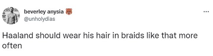 A second fan fully agreed, posting: 'Haaland should wear his hair in braids like that more often.'